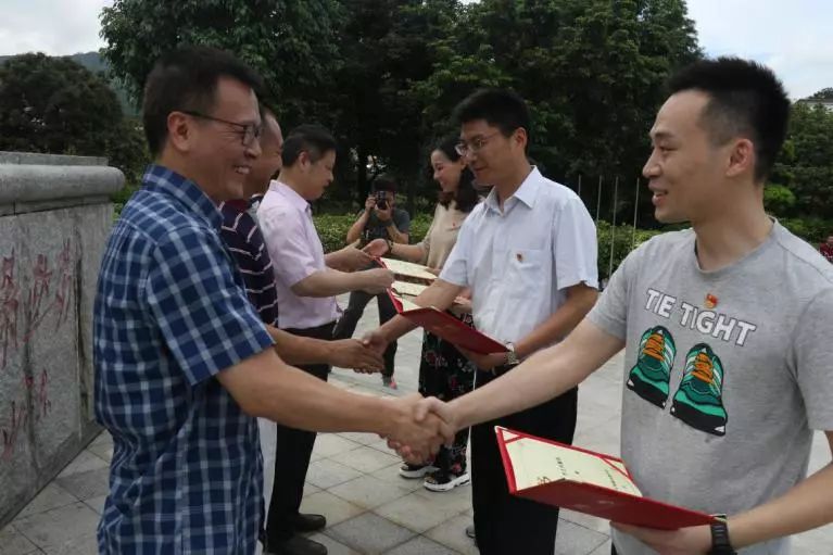 首夏猶清和,芳草亦未歇。在葉挺將軍一身戎裝戰馬塑像前,莊嚴宣布成立黨員先鋒隊,舉行授旗儀式,并為先鋒隊隊長和副隊長頒發聘書。先鋒隊隊員紛紛表態,會依托“黨員先鋒隊”實戰平臺,不斷創新活動載體,豐富活動內容,在善學、擔當、開拓、經營、聚才方面發揮帶頭作用,創優質項目,樹先鋒形象,用實際行動為集團爭光添彩。集團黨委委員為黨員贈送政治生日賀卡,提醒黨員重溫入黨誓詞,時刻牢記使命,以飽滿的精神風貌干好本職工作。