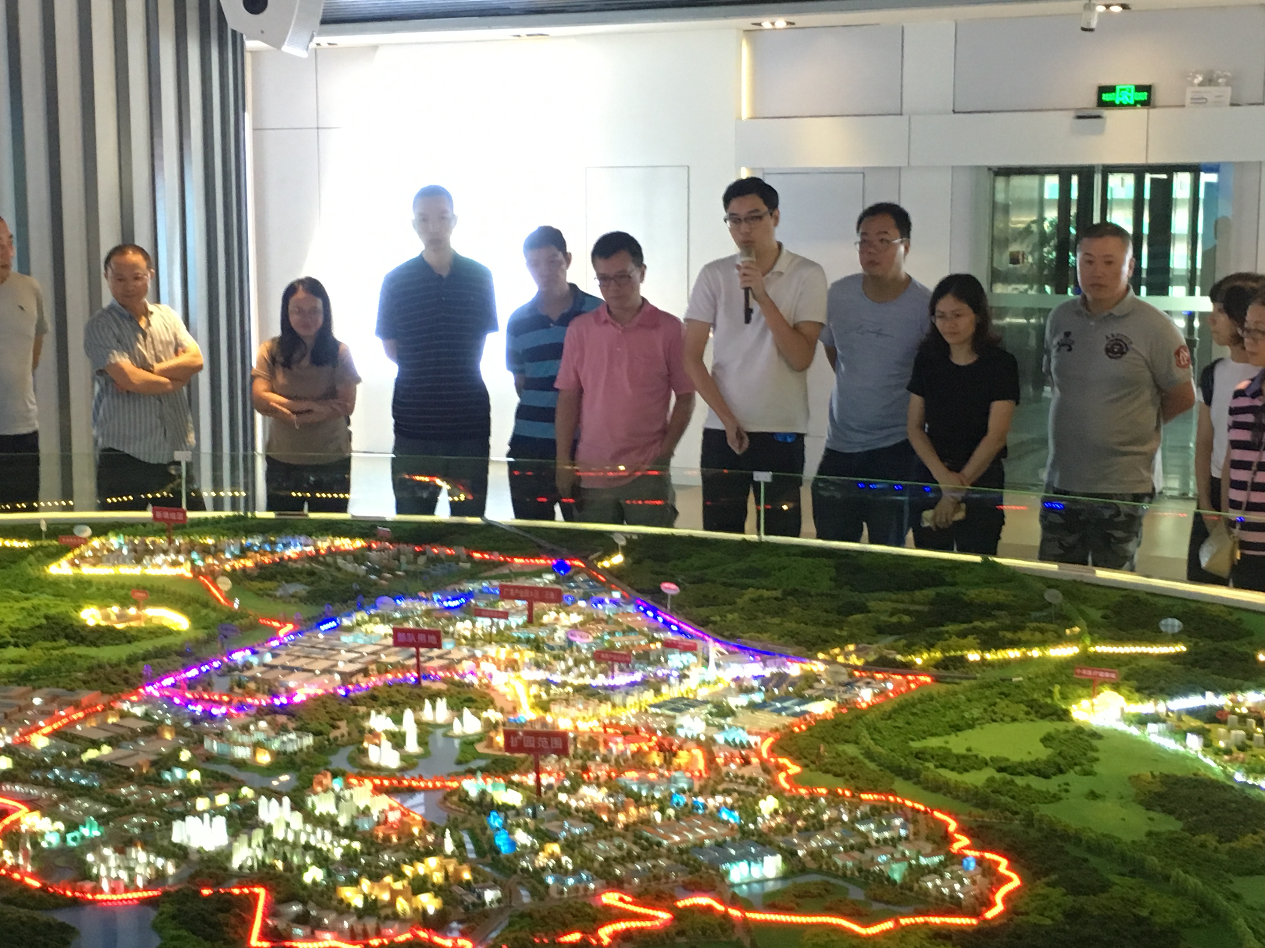 人才集團一行首先參觀了園區管委會展覽廳。園區工作人員通過視頻播放和沙盤模型展示,詳細介紹了園區的整體布局規劃,講解了企業產業鏈的銜接、園區的交通樞紐規劃、重點企業類型和園區的運營管理等內容。目前,廣清產業園集聚現代智能家居、汽車零配件、食品美妝、新材料(精細化工)、高新現代農業生物技術五大產業,正全力打造成為先進生產力延伸區。
