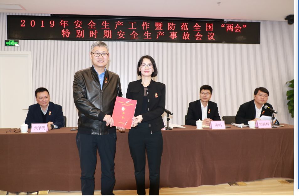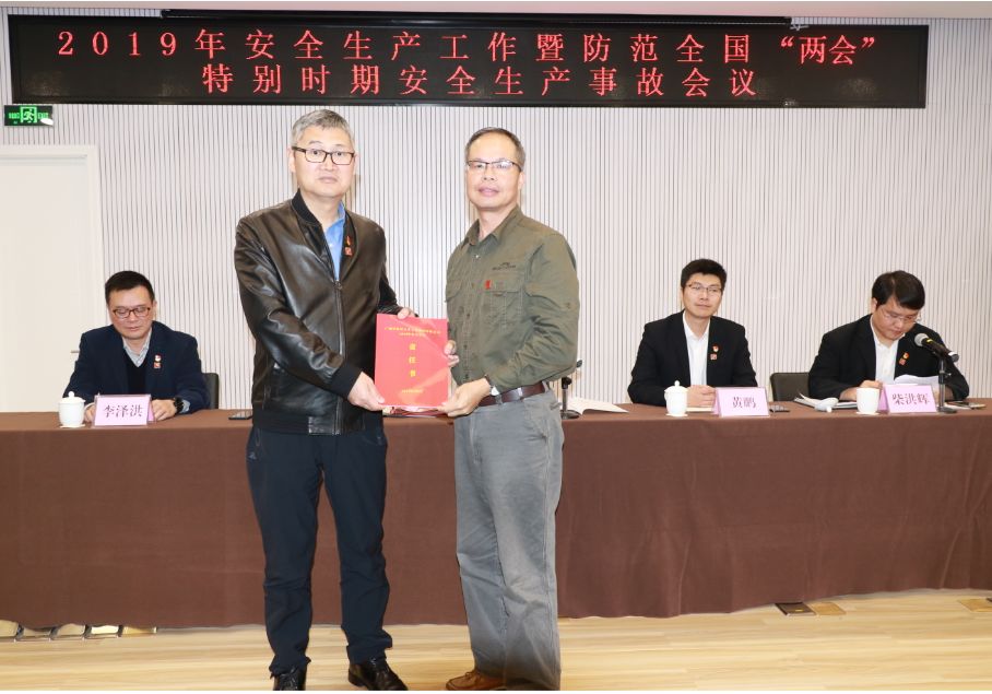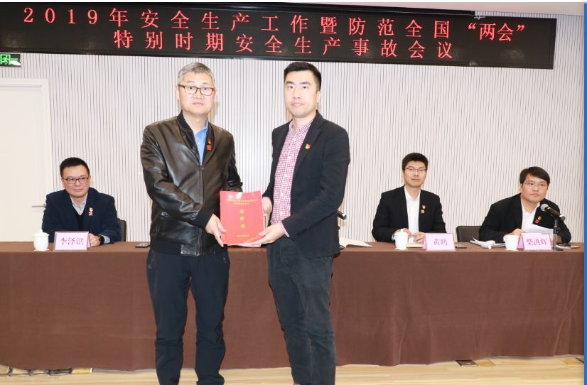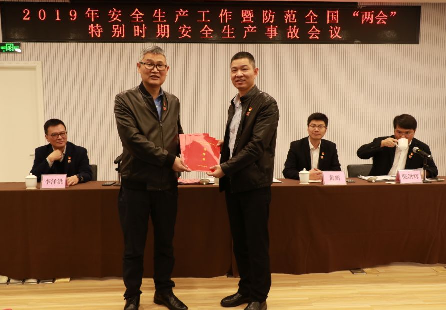 在會議現場,集團各部室、子公司負責人依次到主席臺前向集團黨委書記陳永品遞交了2019年安全生產責任書,對本責任單位的2019年的安全生產工作下了“軍令狀”。