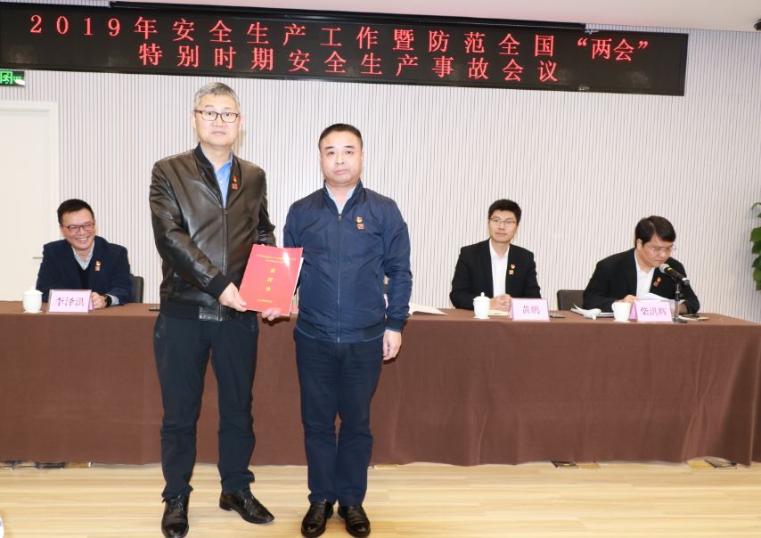 會議由副總經理柴洪輝主持,集團總經理吳祿部署了集團今年安全生產工作重點任務,集團黨委書記、董事長陳永品對集團公司的安全生產工作提出了要切實增強安全生產工作的責任感和緊迫感,狠抓落實堅持“零容忍”的要求,并在會議現場接受集團各部室、各子公司主要負責人簽署的2019年安全生產責任書。