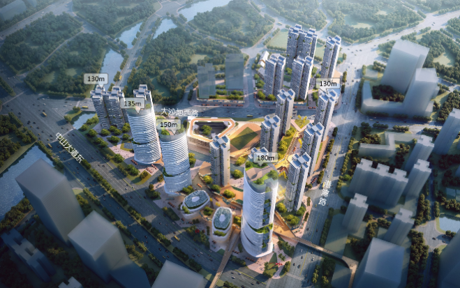 同時(shí),項(xiàng)目將打造階梯式的城市空間形態(tài),尊重生態(tài)自然空間,預(yù)留公共通園廊道,串聯(lián)城市公園與公共空間;沿中山大道東設(shè)置地標(biāo)性辦公塔樓,局部設(shè)計(jì)空中連廊等特色功能節(jié)點(diǎn),塑造整體協(xié)調(diào)、疏朗適宜、豐富多變的天際線(xiàn),提升項(xiàng)目昭示性。
