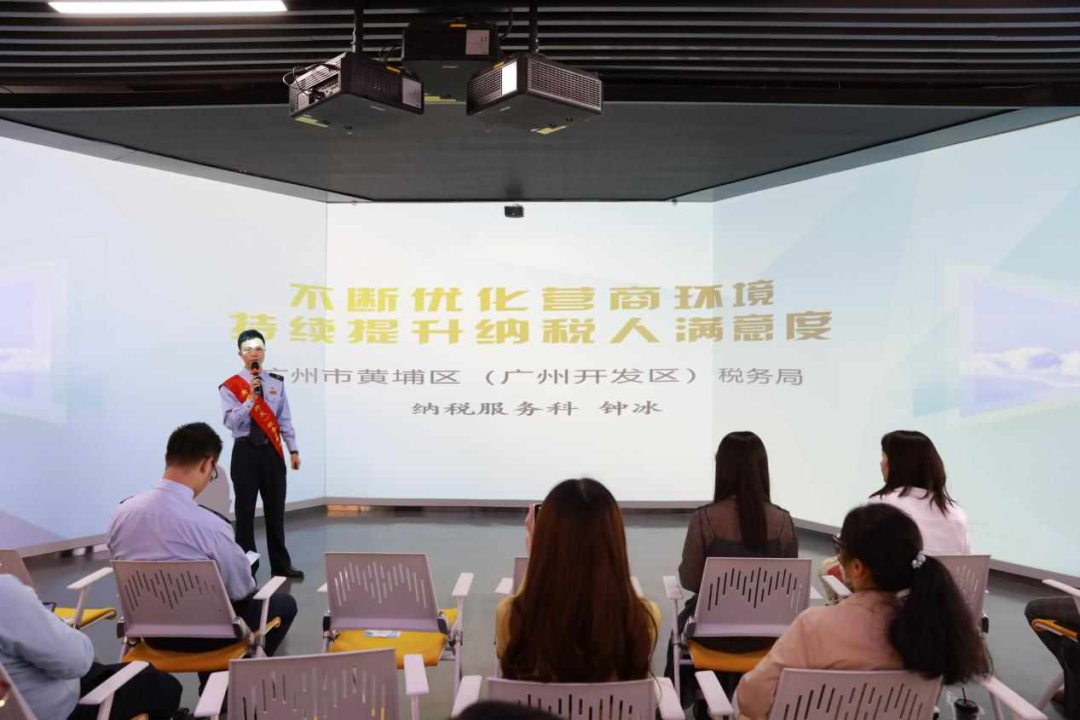 活動在奏唱國歌中揭開序幕,隨后,稅務干部鐘冰主要介紹了稅務部門推出的“可視化云稅廳”、“智能導辦”、“廣州稅信碼”等便民利民惠民辦稅服務措施,詳細講解了每一個步驟和注意事項,手把手輔導企業快速準確掌握辦稅流程。近幾年,區稅務局多措并舉優化稅收營商環境,不斷提高納稅人繳費人的滿意度和獲得感。
