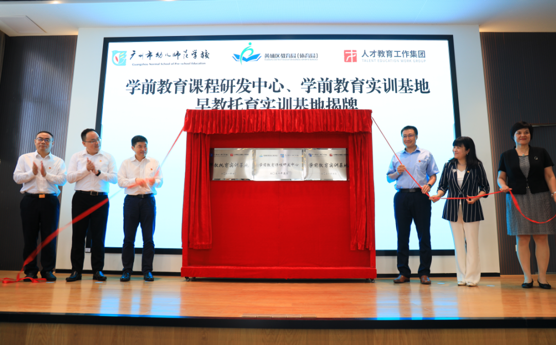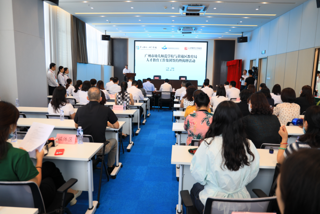 5月11日上午,在廣州開發區管委會劉石副主任、廣州市教育局職成處李營處長、黃埔區教育局何宇鴻局長、黃埔區衛生健康局宋曉漪局長、廣州開發區人才教育工作集團王叢立董事長的見證下,廣州開發區人才教育工作集團肖任迪總經理與廣州市幼兒師范學校丘毅清校長簽訂產教融合項目合作協議,正式掛牌共建“學前教育實訓基地”、“早教托育實訓基地”。