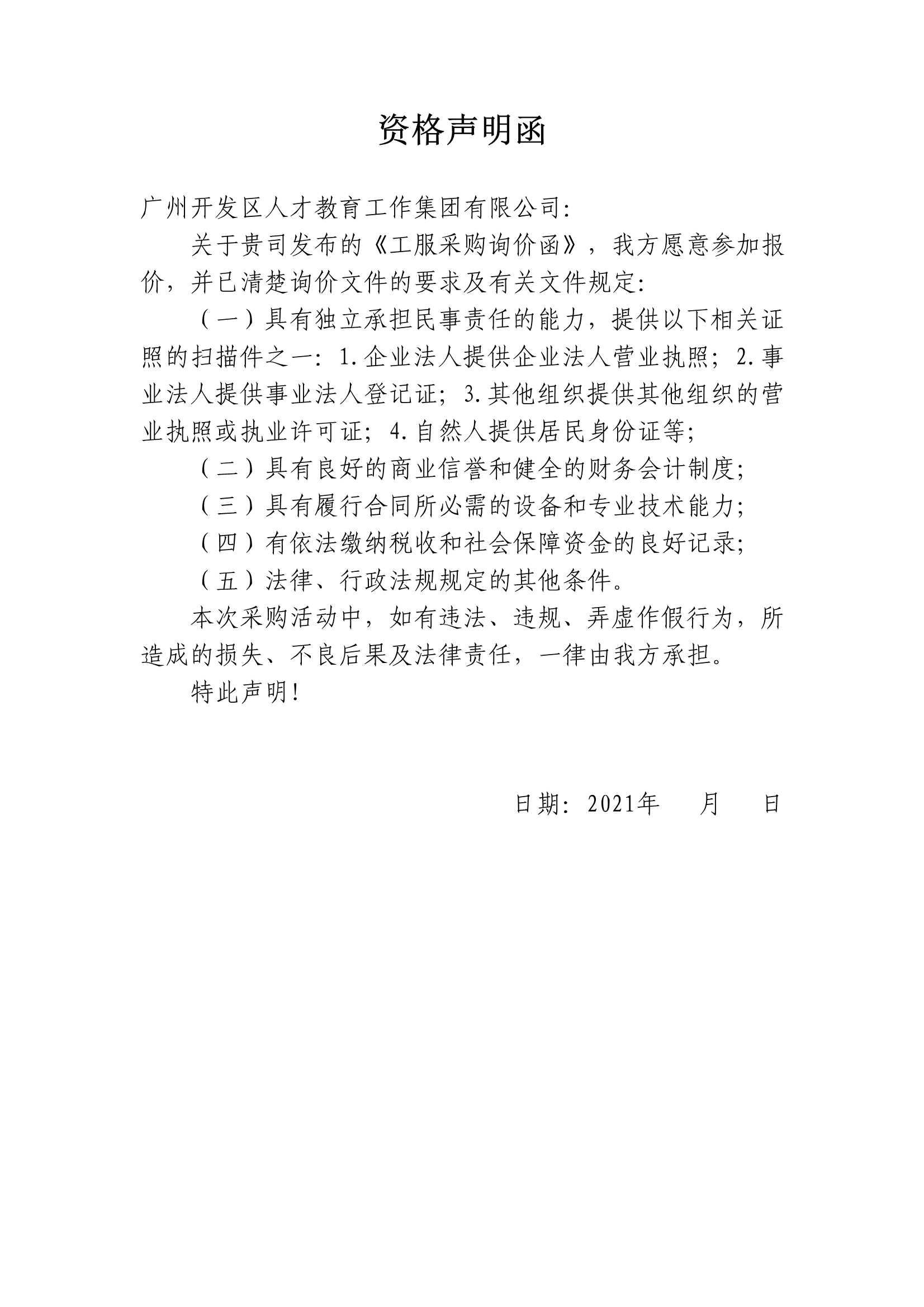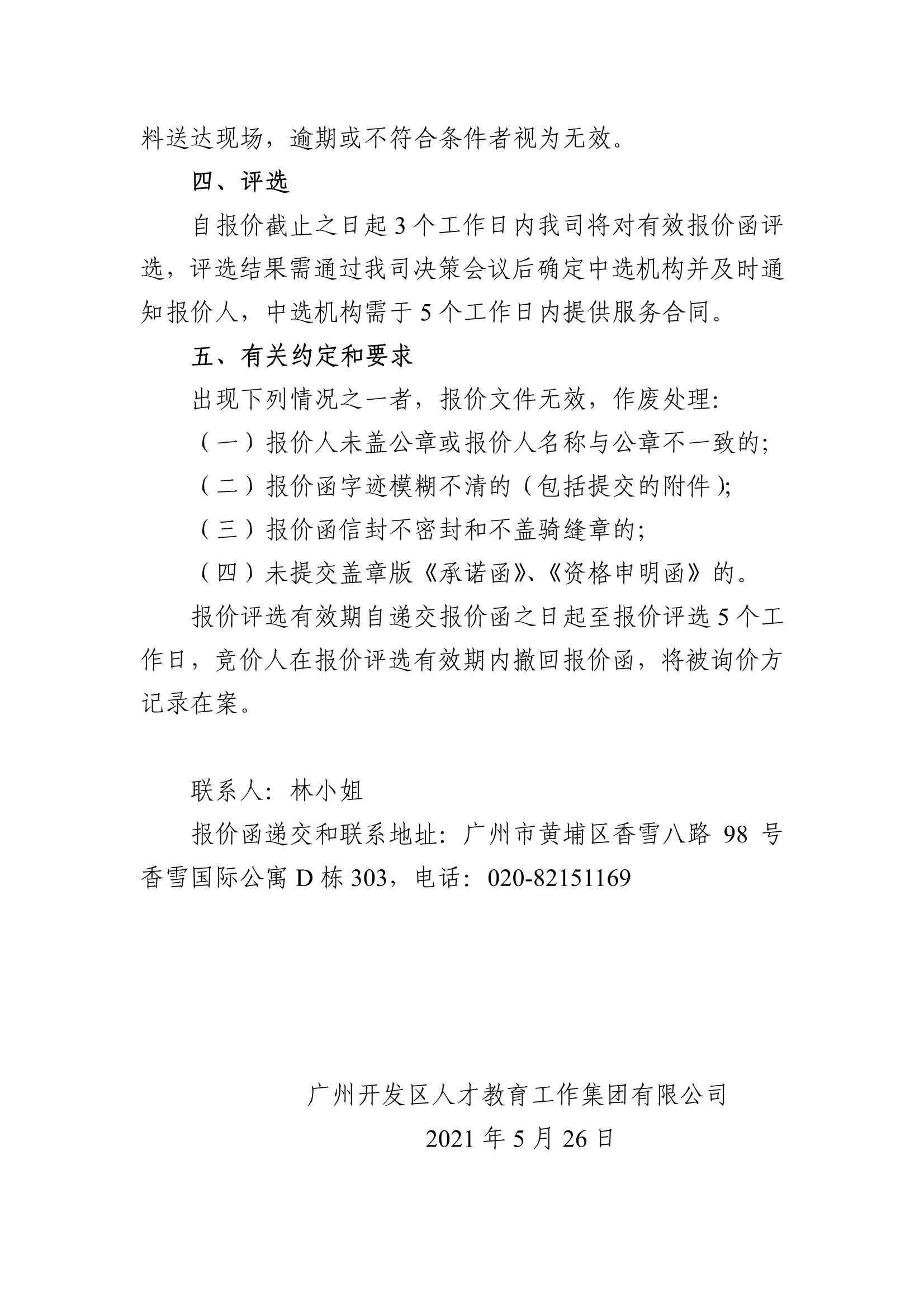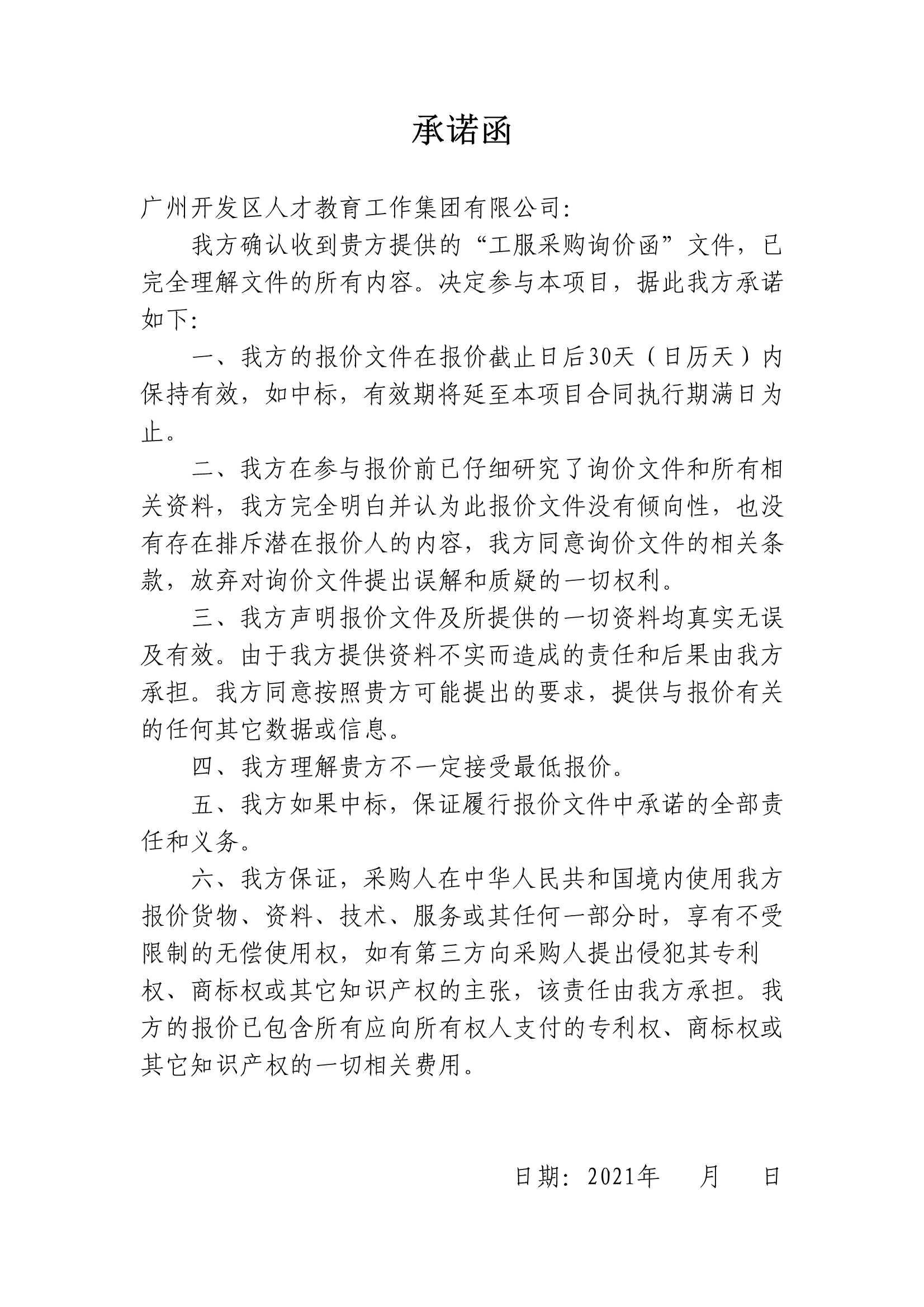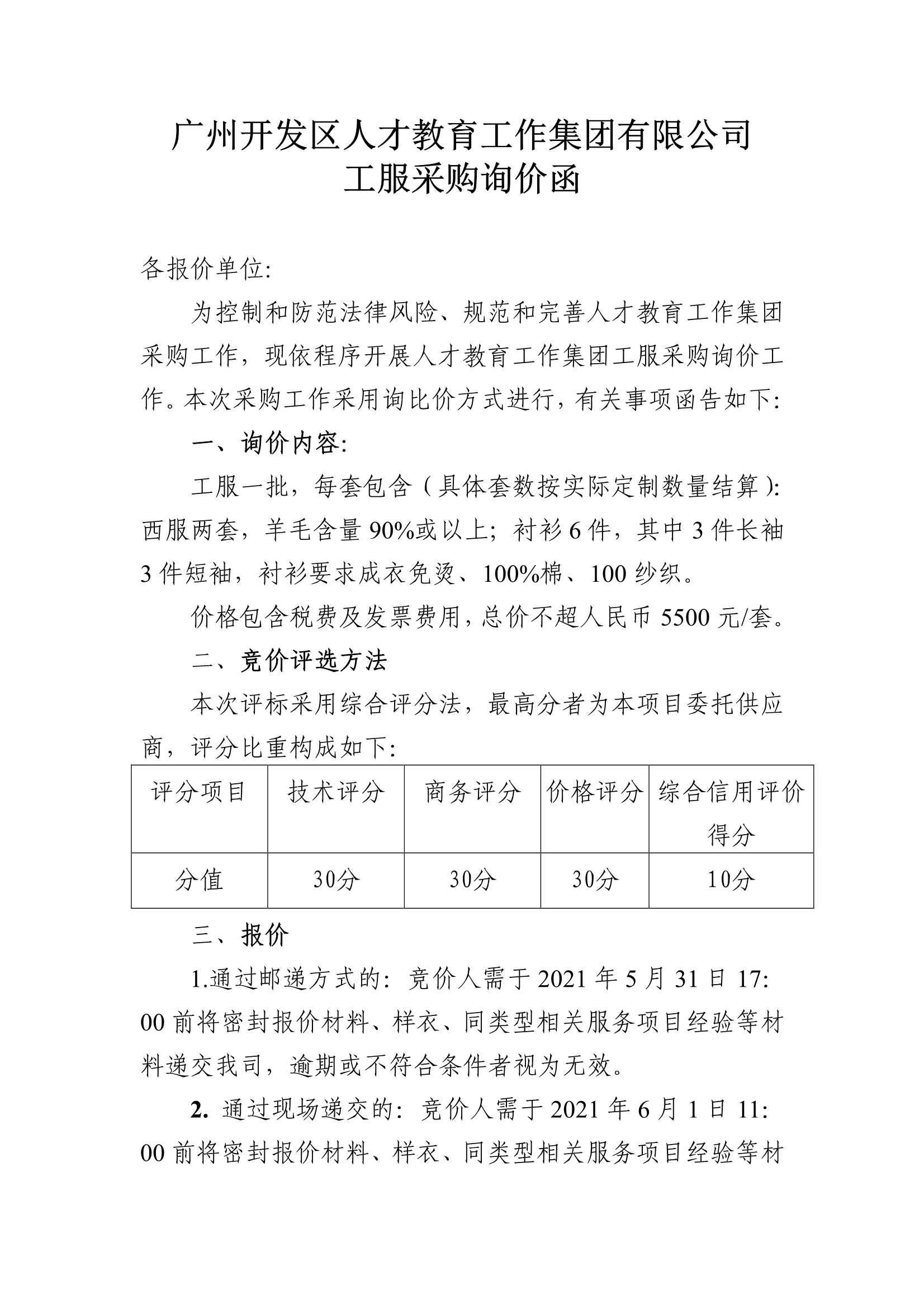 廣州開發區人才教育工作集團有限公司 工服采購詢價函