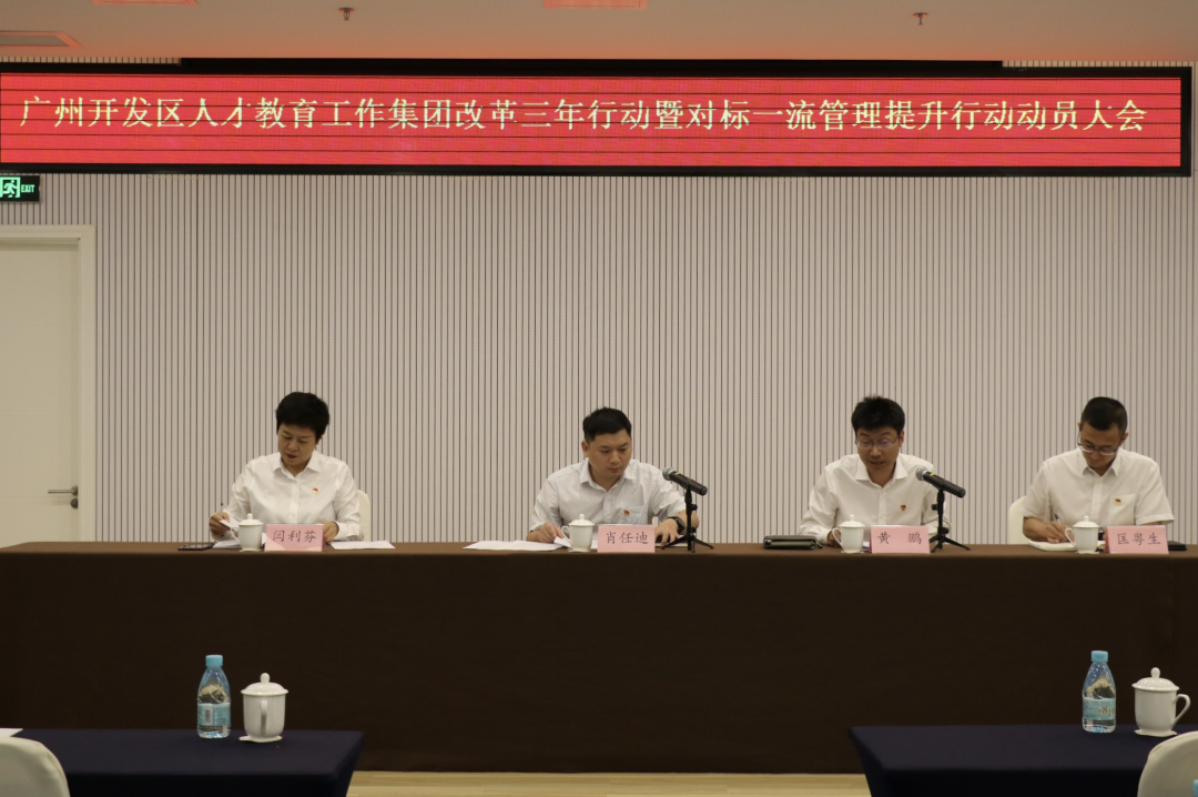 5月27日上午,廣州開發(fā)區(qū)人才教育工作集團召開國企改革三年行動暨對標一流管理提升行動動員大會,集團黨委副書記、總經(jīng)理肖任迪做工作部署并發(fā)表動員講話,集團黨委專職副書記黃鵬主持會議,集團其他領(lǐng)導(dǎo)班子成員、全體中層干部都參加了會議。