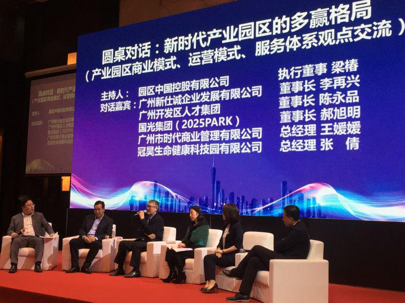 圓桌論壇上,園區中國執行董事梁椿對話TIT創意園董事長李再興、廣州開發區人才集團董事長陳永品、國光集團(2025PARK)董事長郝旭明、廣州市時代商業管理有限公司 總經理王媛媛、冠昊生命健康科技園有限公司創始人、董事 總經理張倩。五個企業家分別代表國有平臺、城市更新、產業地產、園區運營、龍頭企業等五個不同領域園區運營商分享了其園區運營模式。TIT創意園董事長李再興董事長表示,TIT作為廣州較早期的產業園區,園區在傳承的基礎上不斷創新,根據所在區域產業發展重點,龍頭企業的入駐,園區的產業規劃不斷調整升級,從原來的時尚產業集聚產業升級為新一代信息技術產業集聚園區;強調了產業規劃及入園服務對園區發展的重要性。陳永品董事長則表示了政策引導對產業園區發展的引領作用,開發區的黃金十條、美玉十條堅定了企業落戶開發區的信息,而人才工作集團未來打造的創新谷,將在開發區政策優勢的前提條件下,為創新創業人才提供良好的創業載體。國光2025PARK作為花都最大的國際雙創社區,郝旭明董事長從園區規劃設計之初就十分注重產業規劃及運營品牌的塑造。郝董認為,產業園區的運營,載體是基礎,產業是內涵,產業鏈服務的完善體現一個園區對企業的真正價值。希望未來能夠攜手園區運營商一起為廣州市企業營造良好的創業環境。時代商業王媛媛總經理表示,時代是帶有地產血液園區運營商,商業作為集團的較早切入園區運營的公司,深知服務對園區運營的重要性,未來,時代商業也將融入園區商會的大家庭,與在座各位園區運營商攜手合作,深耕園區運營板塊。冠昊生命科技園的張倩總從生物醫藥領域進入園區運營領域,張總表示,冠昊做園區,完全是希望能夠讓生物醫藥企業在創業上少走彎路,園區自創建之初就自帶產業屬性,所以,產業規劃清晰也讓園區招商工作開展的比較暢順,冠昊也非常愿意多與在座的運營商分享產業與載體融合的園區運營經驗,與同行一起進步。