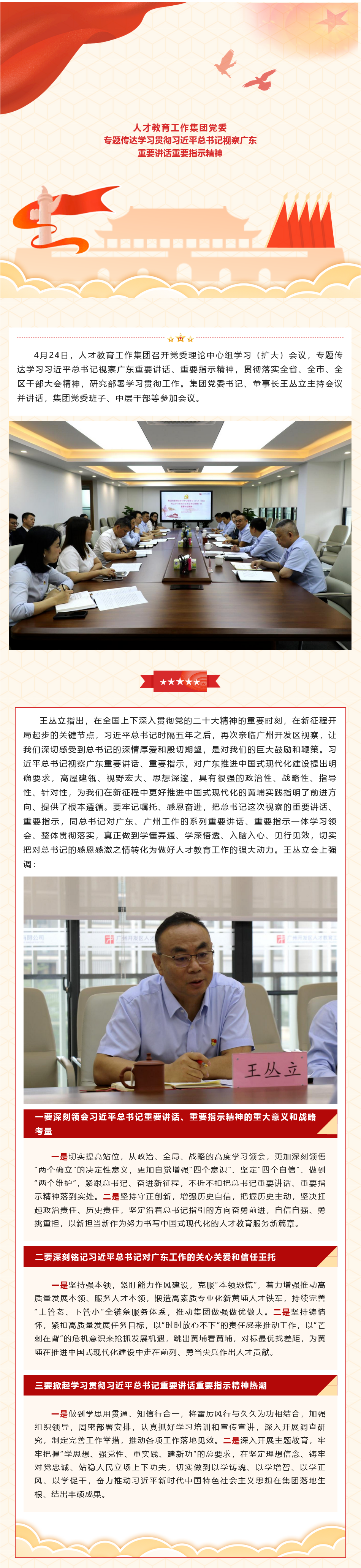 人才集團黨委專題傳達學習貫徹習近平總書記視察廣東重要講話重要指示精神