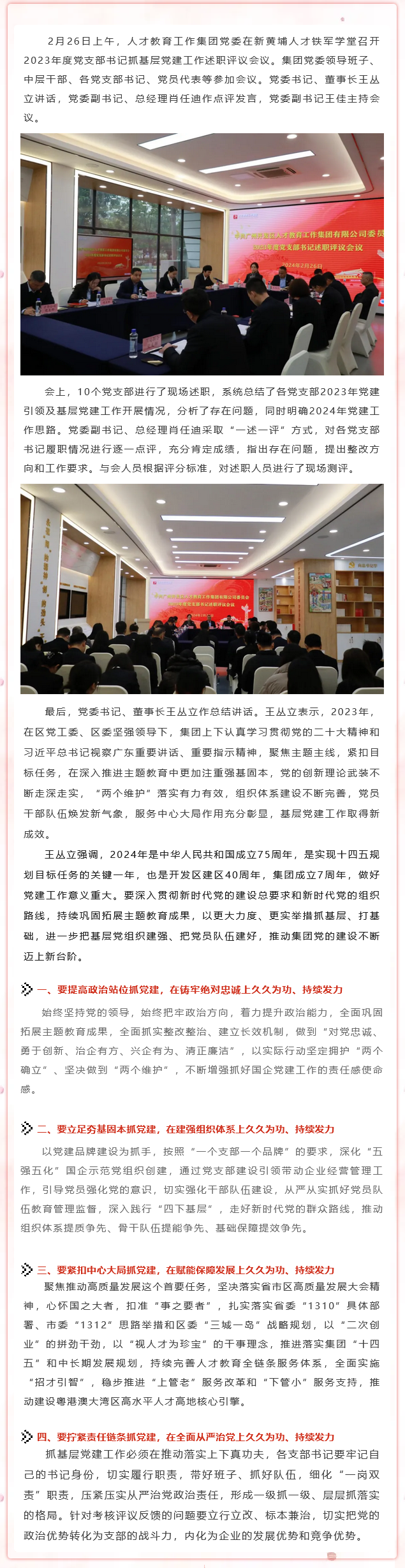 人才教育工作集團黨委召開2023年度黨支部書記抓基層黨建工作述職評議會議