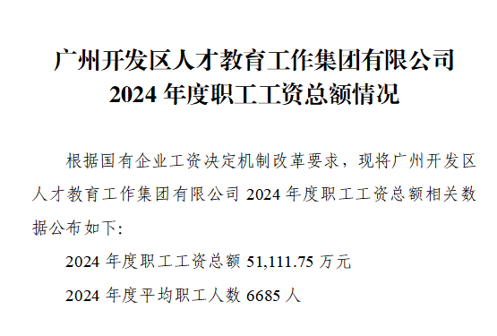 廣州開發(fā)區(qū)人才教育工作集團有限公司2024年度職工工資總額情況